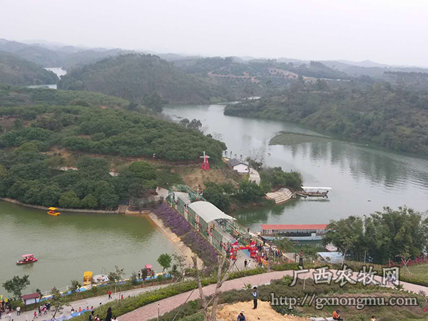 “白鹤纷飞、鹤鸣声声,野鸭戏水”、“湖水清澈,烟波浩渺,远近山水碧黛”,春节期间,大批游客蜂拥前往浦北张黄境内的“越州天湖”休闲农业核心示范区,欣赏湖光山色,与生态果园零距离接触,体验户外运动的乐趣,整个景区充满节日的喜庆气氛。
