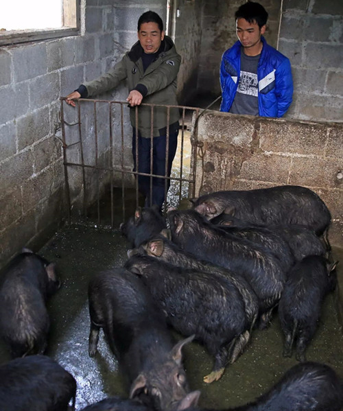 随着养殖规模的逐年扩大,卢兵与柳州畜牧兽医学校签订了合作协议,有了更强的技术支撑。随后,他又投资200多万元,建起了肉联食品加工厂,加工香猪肉条、腊肉和炭烤香猪等香猪产品。自此,融水黑香猪的消费群和销售渠道更大更广。