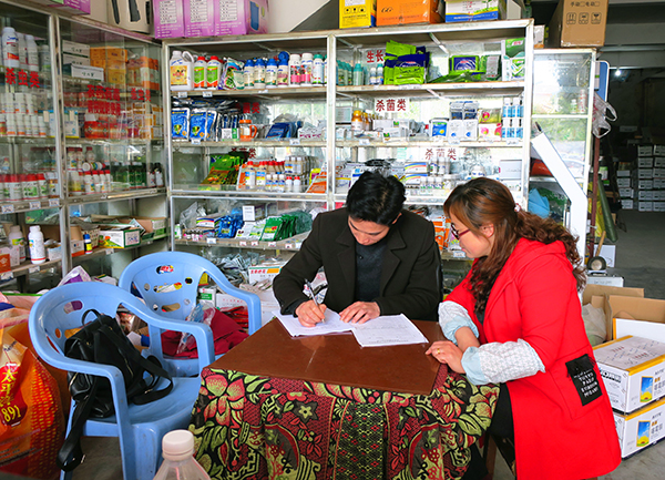 “春种一粒粟,秋收万颗子,一年之计在于春。”近日,随着气温逐渐回升,正值春耕备耕的好时节,农业投入品销售点也将迎来销售旺季。为维护农业投入品市场正常秩序,确保农资安全,保障农民利益,南丹县农产品质量安全监管股工作人员深入各乡镇对农业投入品(农药、种子、化肥)经营门店进行检查,此次检查重点核验农资经营主体资质、农业投入品进销货台账和有无禁限用农业投入品销售行为。