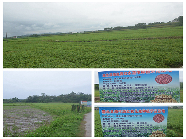 “浦生红衣”花生为浦北县浦生源红衣花生种植专业合作社富硒农产品,近年来,该合作社整合本地有利资源,在泉水镇坭江村建立800亩的富硒红衣花生核心种植基地。为了有效推广富硒红衣花生种植,合作社通过集中培训、现场示范等灵活多样的方式方法,着力宣传红衣花生种植、管理技术、花生加工等知识,辐射带动农户种植红衣花生2000多亩,年产红衣花生600吨,实现年产值780万元,红衣花生成了当地扶贫攻坚支柱产业。