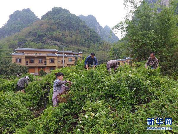 近年来,广西马山县大力发展金银花种植,全县现有金银花种植面积4.5万亩。金银花种植已经成为大石山区农民脱贫致富的产业。