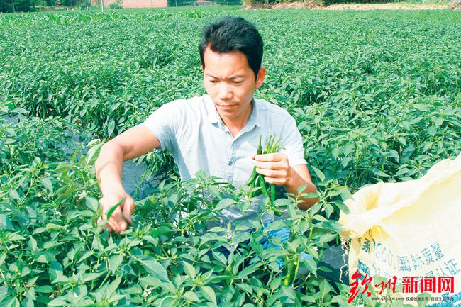 4月10日,记者来到那丽镇那丽坪村,一片片绿油油的辣椒田映入眼帘,大青椒、螺丝椒等各大品种的成熟辣椒挂满枝头。椒农黄玲财一大早就和家人忙碌在自家的辣椒地里,挂满枝头的辣椒被他娴熟轻快地采摘进筐里。“今年我这一亩辣椒地产量1750公斤到2000公斤,按市场价4元-6元/公斤,家里的七八亩辣椒地大概有5万元-6万元收入。”黄玲财高兴地和记者分享这一好消息,相邻的不少椒农也一脸喜悦。今年的辣椒不仅丰收,而且各个品种的辣椒收购价都比去年高,就尖椒这一品种来说,去年市场价1.6元/公斤,今年可达2.4元/公斤。