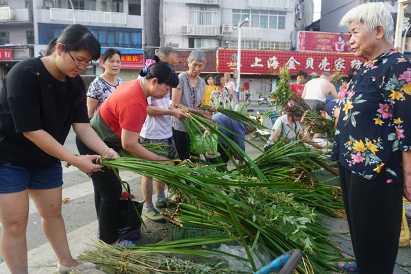 市民选购菖蒲,用以消毒杀虫、驱邪避暑。