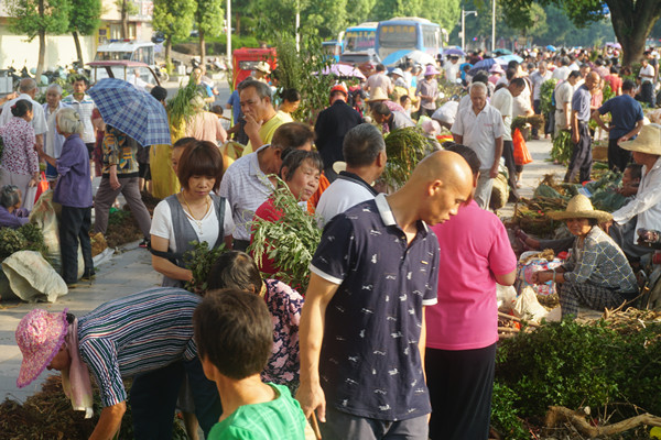 端午节早上7点多钟,笔者看到钟山县城新世纪广场人头攒动、热闹非凡,野生灵芝、厚朴、石斛、冬虫夏草、罗汉果、艾草、菖蒲、灵芝、田七、何首乌、杜仲、回魂草、鸡血藤、金不换和鱼腥草等各类干、鲜中草药琳琅满目,价格在2- 400元/斤不等,本地人忙碌着选购中药材,用于养生保健;外地药材商也趁赶端午节前后频频打电话订货,钟山县端午节中药材买卖活跃,中药材市场购销两旺,种植、采集中草药成钟山农民增收“新引擎”。