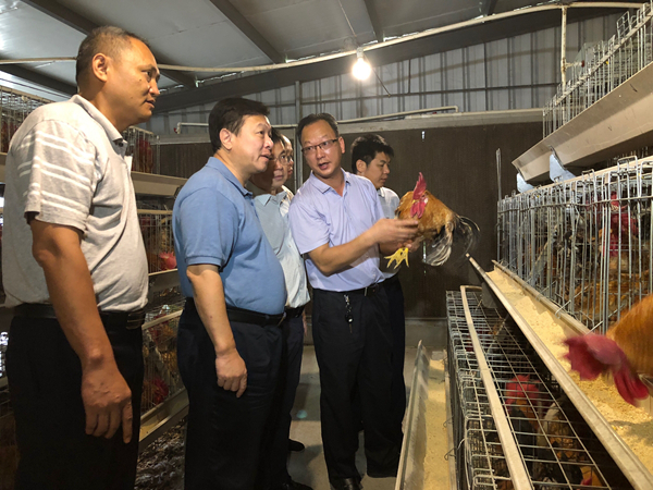 刘俊一行先后到了大化县康丰七百弄鸡繁育场、春兴生灵生态养殖专业合作社、桑蚕扶贫产业示范点、红水河长寿养生电子商务城等地进行深入研。调研过程中,刘俊与经营负责人、技术人员等作了交流,询问了各个企业的生产经营、技术与设备创新、电商发展、品牌打造、发展需求等情况,特别是对企业通过发展农业产业,支持贫困地区农民脱贫致富情况进行了详细了解,并对企业如何做大做强产业提出了建议。
