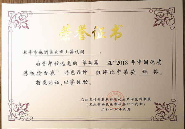 近日,由桂平市选送的桂味、草莓荔两个荔枝样品,在2018年中国优质荔枝擂台赛中,荣获特色品种评比银奖。这是继去年桂平选送的四个桂味荔枝样品,获一金二银一铜奖励之后,桂平麻垌荔枝再次获得的殊荣,充分显示了麻垌荔枝的上乘品质。