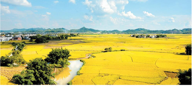 7月的古辣镇,万顷古辣香米产业示范区里,饱满的稻穗随风起伏,田野里弥漫着稻香。宾阳县利用古辣镇平坦的地势,大片肥田沃野宜种性广的特色和优势,提出打造“宾阳‘古辣香米’产业示范区”的规划。