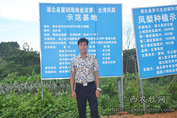 精丰农牧业有限公司的台湾凤梨种植基地位于世界长寿之乡——浦北,这里山水条件优越,气候环境舒适宜人,植被茂密,空气清新,生态环境十分优良。生产出来的凤梨果肉绵密细致、皮薄肉多、汁水清润充盈、爽口甜脆,受到了大量客商的喜爱,是一种富硒农产品和无公害农产品。