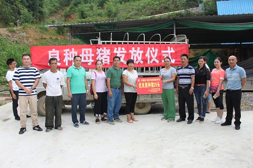 八腊乡五福村和老棚村是广西畜牧畜牧研究所科技特派员的定点服务村。8月17日,广西畜牧研究所和天峨县科技局一行10人来到天峨县八腊乡,向五福村下威来屯桂森家庭农场、佳乐家庭农场以及老棚村贫困户龙永谋家共赠送种猪52头,并现场传授了养殖知识。