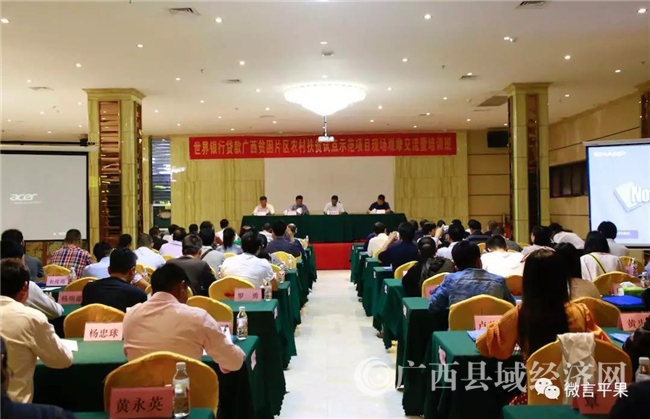 近日,世界银行贷款广西贫困区农村扶贫试点示范项目现场观摩交流暨培训会在平果平铝国际大酒店举行。自治区扶贫办总经济师黄灿滨做开班动员讲话,县委常委、县人民政府副县长黄仰东出席培训会并致辞。平果县、都安县做典型汇报发言。自治区及项目覆盖区域的相关领导和业务骨干12个区、市、县共77人参加培训会。