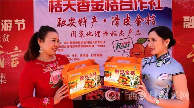 近年来,融安金桔已经成为融安特色农业的核心产业,有了“一果兴百业、一果富一城”的战略地位,融安金桔先后斩获一系列殊荣,成为了国家地理标志保护产品,种植规模由几万亩扩大到2018年的14.7万亩,年产值由不足亿元提升为2018年的13.5亿元。借助“互联网+”的时代潮流,融安金桔现已畅销全国各地,线上销售供不应求,电商网络年销售总额由“零”起步提高到目前的15.24亿元。融安金桔作为“5+2”特色产业之一,以“半亩金桔助脱贫”姿态,带动全县4292户贫困户9629名贫困人口脱贫。