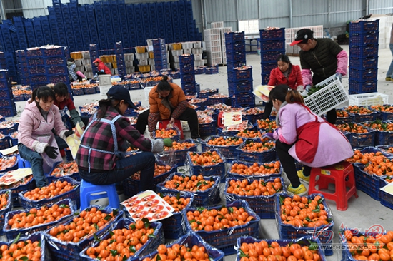 在抓好糖料蔗生产的同时,该村还积极引导村民利用山坡地发展水果生产,目前,全村共有沙田柚、砂糖桔等水果3000多亩。为了解决水果的销路问题,该村积极帮助水果企业协调落实项目建设用地,促成“丰腾果业公司”落户该村。2018年9月,项目建成投产,优先安排有劳动能力的贫困户到公司务工,目前共吸收当地70多个农民工就业,月工资3000元左右。11月开始代购代销水果,仅一个月多时间,已收购南丰蜜桔、沙糖桔、沃柑等水果100多万公斤,不仅代购代销当地的水果,还辐射周边乡镇。