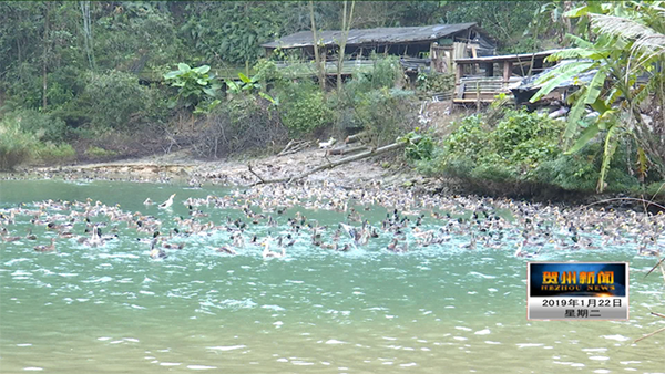 目前,赵仕峰家的土鸭和野鸭都采用散养的方式,回笼快,好喂养,三四个月左右就能有一批次,一年能养好几千只,收益明显。