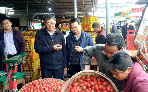 田阳县是秋冬番茄的主产区,是广西主要的“南菜北运”基地。2018年,田阳县秋冬菜播种面积32.2万亩,其中番茄种植面积20.55万亩,番茄产量约50万吨,品种以水果型樱桃番茄为主。临近春节是番茄采收的高峰期,为进一步做好春节前后番茄的生产销售工作,2019年1月29-30日,自治区农业农村厅副厅长谢东率队赴田阳县开展调研指导。