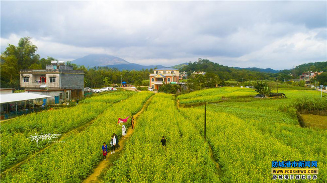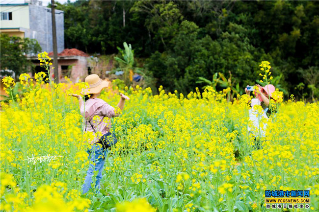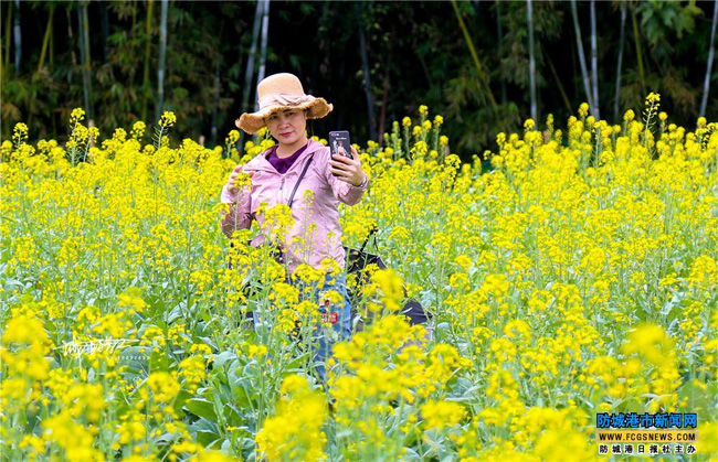 春节期间,位于防城港市东兴江平镇那漏村那一组的竹江花寨油菜花基地的数十亩油菜花开了,金黄色的花海吸引了许多市民前往赏花。2月7日,大年初三,记者也是和朋友一起来到了这里,深入花丛中,感受春天的气息。