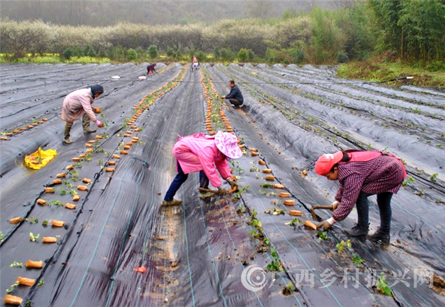 2月13日,在南丹县城关镇莲花村丹丽农旅开发专业合作社中药材种植基地,村民正抢抓农时种植山豆根。