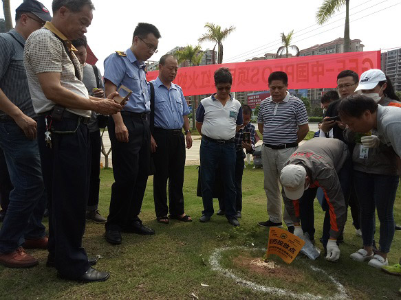 代表们参观梧州市龙圩区苍海湖公园红火蚁防控示范现场