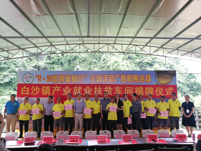 在桂林市阳朔县,阳朔县政府举办“5·20”世界蜜蜂日主题活动,开展了蜜蜂文化展览、产业扶贫车间和就业扶贫车间揭牌、2018年度全托管贫困户获益蜂蜜发放、2019年代养贫困户蜂箱认领仪式和养蜂技术培训等活动。这次活动旗帜鲜明的将蜜蜂产业发展与“精准扶贫”的充分结合。阳朔县为生态旅游名县,生态保护力度大,养殖业发展受到较大限制,无污染的蜜蜂养殖产业当地的政府高度重视。通过利用阳朔旅游品牌带动,提升了阳朔九龙藤蜂蜜品牌知名度,将为我区蜜蜂品牌建设树立榜样。