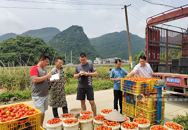 5月26日,田阳县五村镇一处田头产品收购点在交易反季节西红柿。广西新闻网通讯员 黄国顺摄