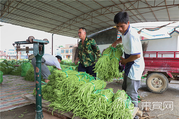 一捆捆豇豆上秤“量体重”。