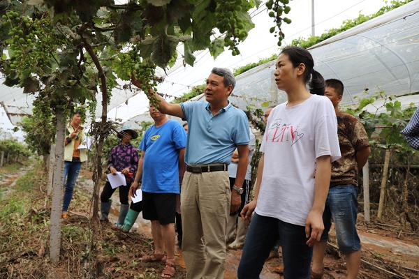 5月28-29日,广西特色作物研究院果树研究所、国家现代农业产业技术体系广西葡萄创新团队科技人员,会同国家现代农业产业技术体系南宁综合试验站、广西农业科学院科研人员一行四人,在资源县农业农村局相关负责人及水果站技术人员陪同下,深入中峰镇受灾果园进行灾情调查,开展灾后恢复生产技术指导。