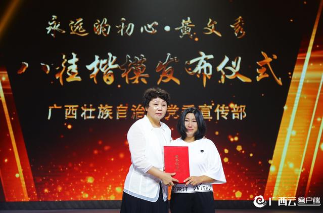 今日(6月23日),自治区党委宣传部在广西广播电视台举行“永远的初心·黄文秀”——八桂楷模发布仪式,并通过多家国家级、自治区级新媒体平台,向全社会发布百色市委宣传部理论科副科长、派驻乐业县新化镇百坭村第一书记黄文秀先进事迹和崇高精神。自治区党委常委、宣传部部长范晓莉出席活动并颁发证书。