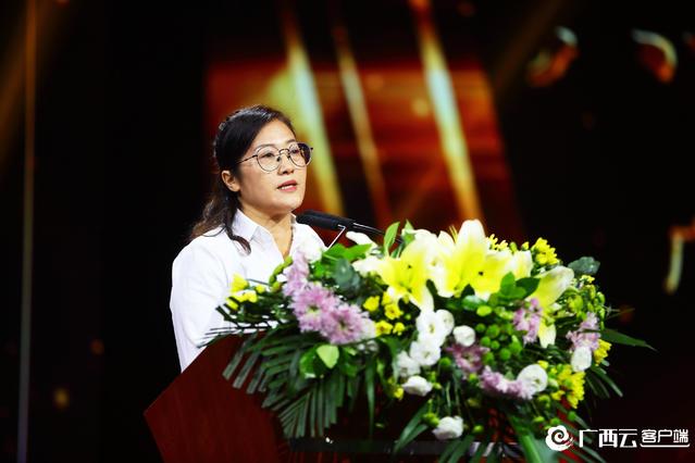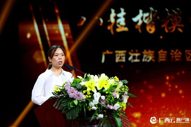 黄文秀姐姐黄爱娟代表黄文秀接受“八桂楷模”荣誉证书。