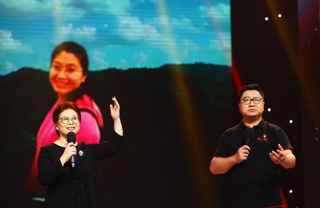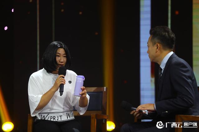 现场主持人采访黄文秀的姐姐黄爱娟,黄爱娟回忆与妹妹的生活点滴。