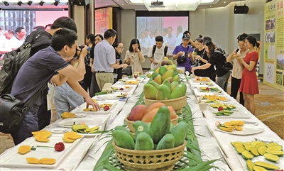 推介会上商贾云集,宾朋满座,田阳县相关领导为与会的嘉宾展示介绍了百色芒果的部分品种。同时,推介会现场还设置有芒果品鉴区,供嘉宾和客商品鉴。