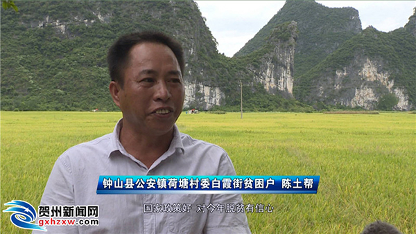 钟山县公安镇荷塘村委白霞街贫困户陈土帮说:“国家政策好,对今年脱贫有信心。”