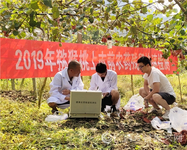今年红心猕猴桃预计在8月15日前后开始采摘上市,在红心猕猴桃即将上市之际,南丹县农业农村局农产品质量检测中心和农产品质量安全监管股工作人员到该县各个红心猕猴桃种植基地开展猕猴桃农药残留抽样检测。检测中,检测工作人员采取随机抽样,对种植场种植的猕猴桃分批采集样品,抽取样品果的皮部,分别浸泡一定时间后,使用农药残留快速检测仪进行快速检测农残指标。经过检测,所检样品结果如全部为阴性呈蓝色,那么检测结果合格,没有农药残留超标现象,并当场开具了《农产品产地准出证明》,让市民朋友们可以放心购买、食用。不仅如此,农残检测合格,也为果农们放心采摘销售注上了一剂强心剂。