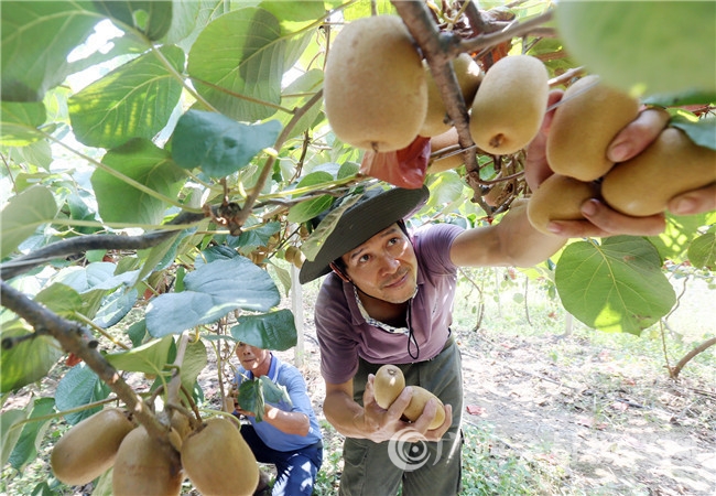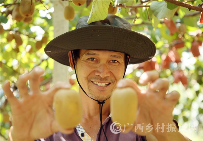 在交谈中笔者得知,莫远海从2015年走上发展种植猕猴桃这条致富路。当年,他带着对返乡创业的满腔热忱,回村后通过流转土地25亩,带头搞起了猕猴桃种植产业。现在,他种植的20多亩黄心猕猴桃已进入盛果期,还有新品种红心猕猴桃明年也将进入盛果期,预计年产值15万元。