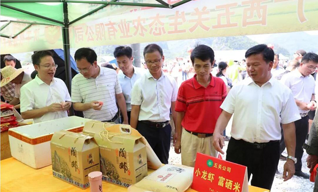 9月20日,首届“广西稻渔丰收节”暨"兴宾区小龙虾美食文化节” 在广西来宾市兴宾区五山镇举行。本次活动由广西稻渔生态种养产业技术创新战略联盟、来宾市兴宾区委、区人民政府联合主办。广西稻渔生态种养产业战略联盟单位、来自全区从事稻渔综合种养生产经营企业、水产科研推广单位以及兴宾区五山镇农民代表共600多人参加了本次活动。