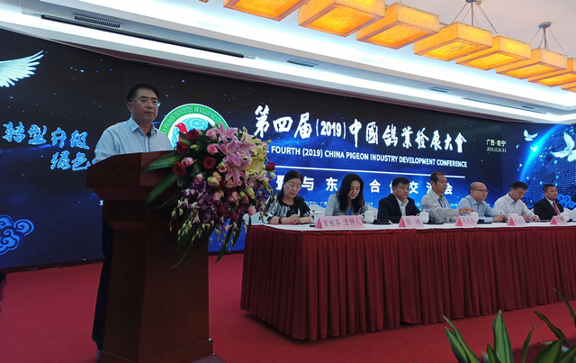 10月30日,第四届(2019)中国鸽业发展大会暨与东盟合作交流会在南宁召开,大会由中国畜牧业协会主办,行业知名专家、国内外鸽业企业代表、肉鸽饲料、养殖设施设备企业代表等约450人参加会议。自治区农业农村厅总兽医师梁纪豪在会上致辞。