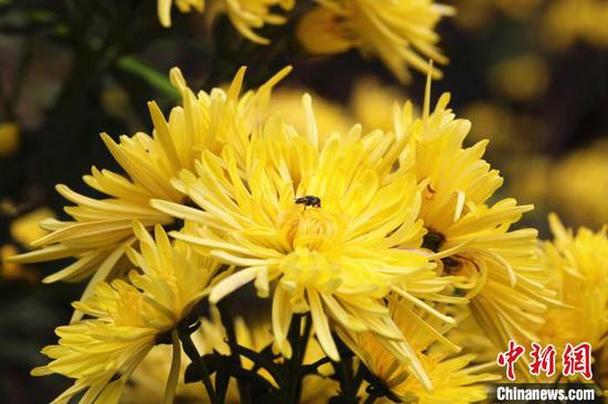 蜜蜂在花丛中采蜜。 韦露 摄