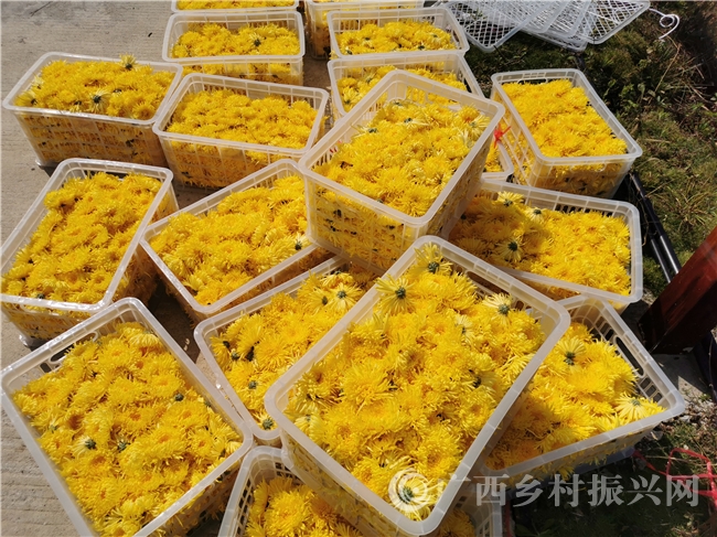 据木本油料产业发展中心主任韦理电介绍,因为油茶从种植到结果需要五到六年的时间,利用这个油茶新造林地空间,在油茶林下套种药用菊花,在短期内就可以产生经济效益。目前套种的药用菊花品种有杭白菊、金丝皇菊、婺源菊种植面积2216亩,亩产大概干花在100到150公斤左右,按照目前市场价格32元/公斤算,总产值将达709万元左右。