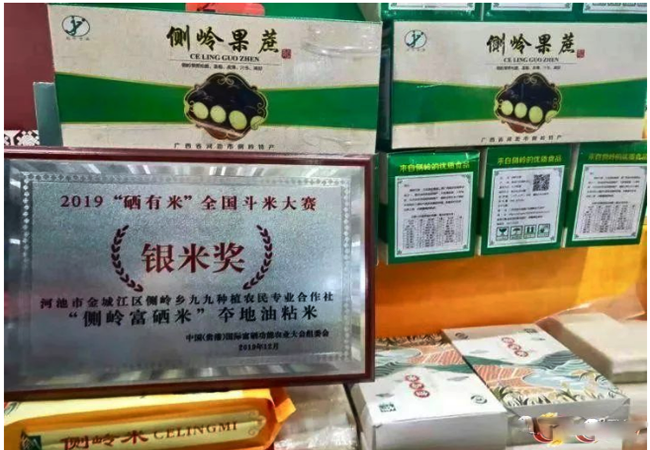 2017年,金城江区大力发展富硒农业,打造了侧岭乡侧岭社区和六圩镇凌霄村2个千亩的富硒水稻核心示范区。同年8月,侧岭乡富硒水稻油粘米基地成功通过硒含量验收,为当地富硒大米种植创建了良好基础。