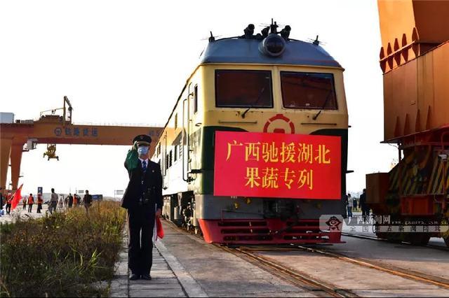 1月30日17时45分,装载着200多吨优质蔬菜、禽蛋的广西捐赠湖北果蔬冷链首发专列从南宁国际铁路港发车,列车运行35个小时后将到达湖北省武汉市。