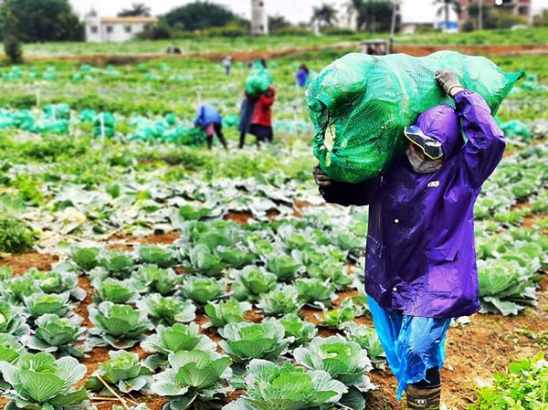 2月3日,天空下起了雨,给包菜的采摘工作增添了难度。雨水打在工人们的脸颊,眼睛被雨水浸湿却顾不上擦拭;田地变得泥泞湿滑,工人们排成一列硬生生在泥地里踏出了新路。“再大的雨也不能耽搁了这批蔬菜,它们的目的地是武汉。”工人黄高庆说,50吨包菜需要15个小时的采摘时间,高强度的体力工作让工人们的腿脚有些酸胀,但一想到武汉的群众,大家又充满了干劲。