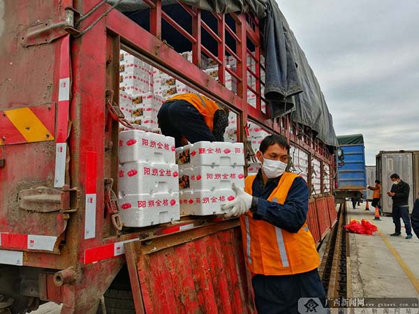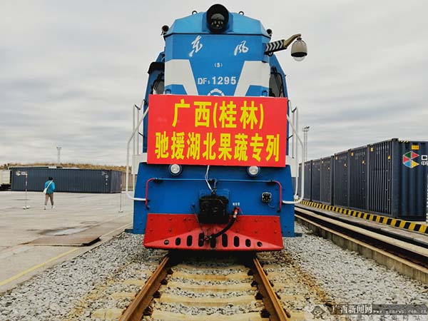 广西(桂林)驰援湖北果蔬专列。广西新闻网记者 樊成甫 摄