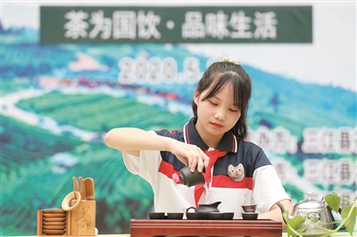 5月21日,三江侗族自治县在县城举办庆祝首届国际茶日暨第十二届全民饮茶日活动,来自侗乡的8组选手同台比拼茶艺,倾情展示侗族茶文化。
