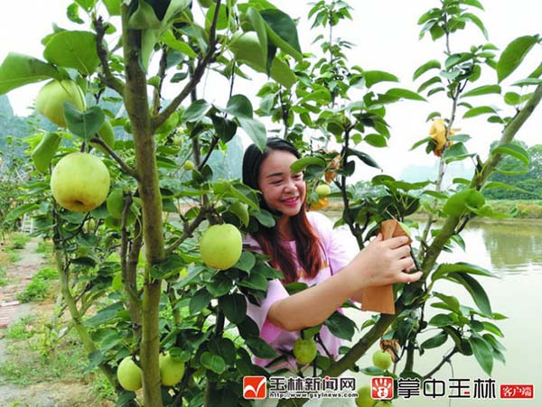 日前,记者在玉州区南江街道云良村南方早熟梨产业扶贫基地里看到,先期种下的2000多株南方早熟梨即将进入收获季节,累累果实压满了枝头,成为一道靓丽的风景线。