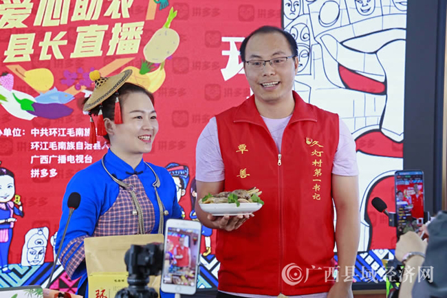 这是环江县继今年5月退出贫困县序列后,首次“触电”,进行电商直播带货。黄炳峰县长在近一个小时的直播时间里推荐了7款环江好货,不断呼吁网友“快快下单”“赶紧买它”。