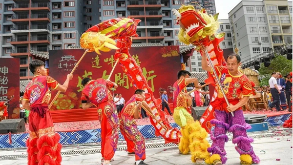 资料图片:达吽小镇开街仪式之舞龙舞狮表演。张洪涛 摄