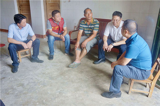 市委梁旭辉副书记在柳城县大埔镇田垌村鸦鹊屯韦江家里了解脱贫工作情况