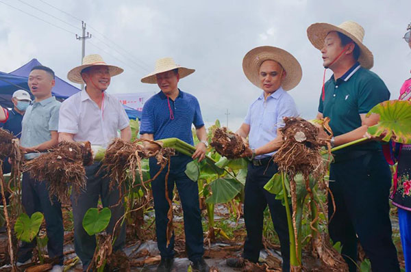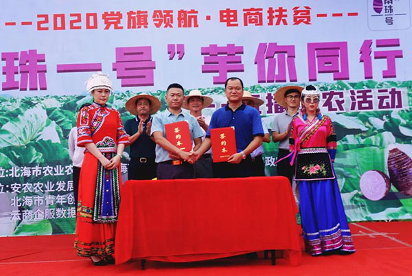 活动期间,安农公司还与某电商平台签订了直播带货意向。参加活动的领导纷纷走进直播平台,与网络主播一起为“南珠一号,‘芋’你同行”代言”。