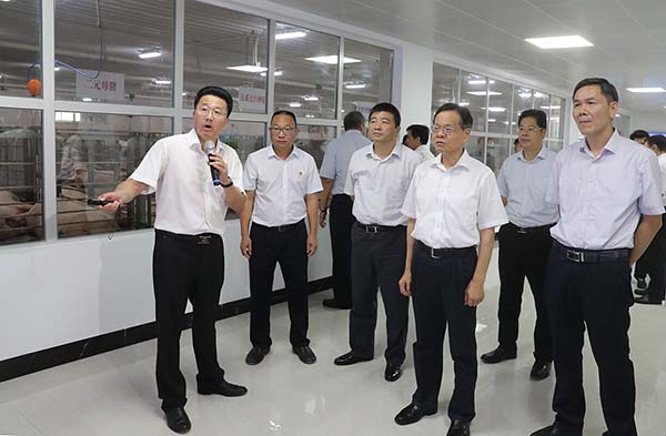 7月29日,自治区主席陈武来到横县桂垦牧业公司良圻原种猪场,详细了解农垦集团生猪恢复生产和畜牧扩张情况。梁凯昌摄