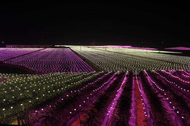 每天夜幕降临,广西壮族自治区南宁市隆安县那桐镇、丁当镇的1.5万亩火龙果基地便会变成灯海,蔚为壮观。这是当地农业种植企业运用现代化科技手段,对火龙果进行“催花补光”,以提高产量。
