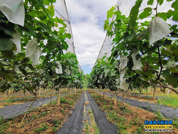 秀山庄采摘园内,葡萄已套上环保袋,等待成熟。