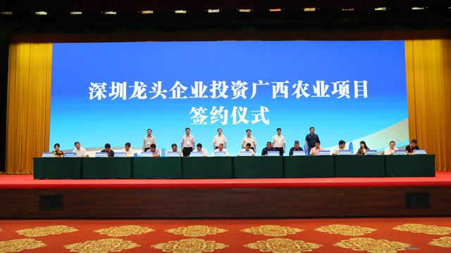 此次活动深圳共有38家企业参会。会上,深圳企业代表作投资合作意向介绍;三江县、罗城县、都安县、大化县、乐业县、隆林县、那坡县人民政府有关负责人作项目推介。本次签约洽谈会现场签约8个项目,协议投资金额15.6亿元,合作领域涉及有机农业种植、农产品电商、生猪养殖、农产品加工等方面。会上还举行了首批供应深圳农产品示范基地授牌仪式和第二批广西优质农产品“圳品”颁证仪式。